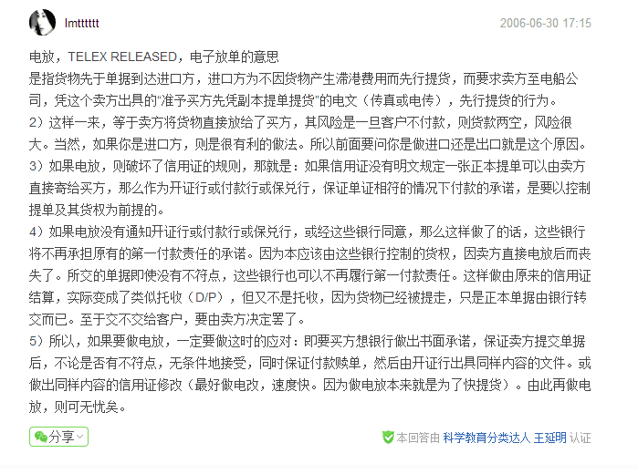 1)电放有的简写为TLX, 少部分人简写为T/R(另:T/R还指trucking 吨车费,拖车费)。