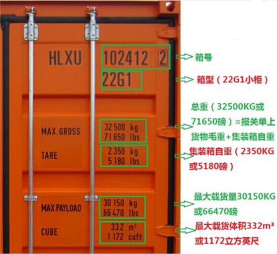 每个集装箱的皮重都可从集装箱门边喷涂信息获知,也可通过船公司提供的集装箱皮重在线查询工具获知。