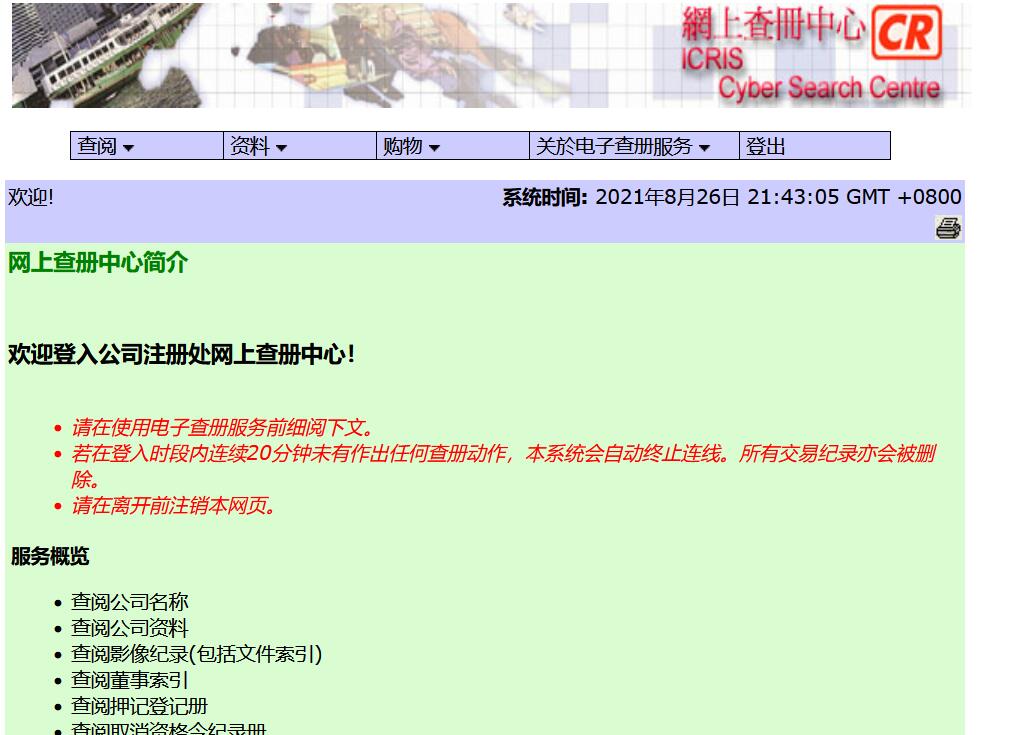 现在香港公司年审查询资料查询都可以直接上香港公司注册处的网上查册中心查询的,就是进入的时候那验证码超难看,各种输入都不对,各种尝试,才知道验证码是有大小写区分的。查询地址:https://www.icris.cr.gov.hk/csci/