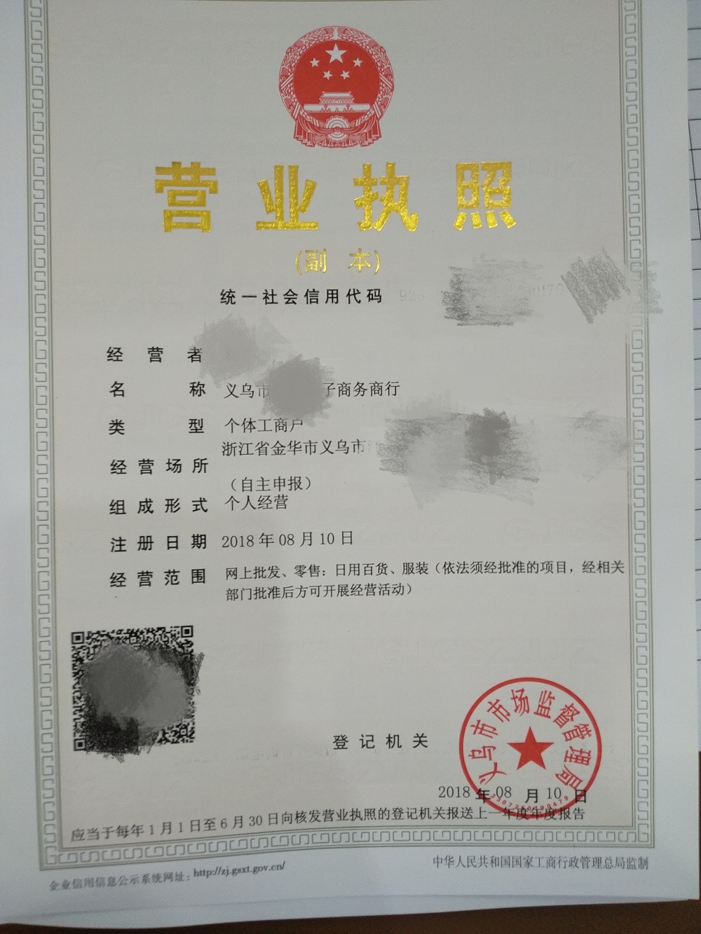 注册时只需要提供身份证正反面照片就可以,年满18周岁都可以注册。注册时间3-5个工作日,注册地址我司提供,名称义乌市XX电子商务商行,经营范围1-3个。