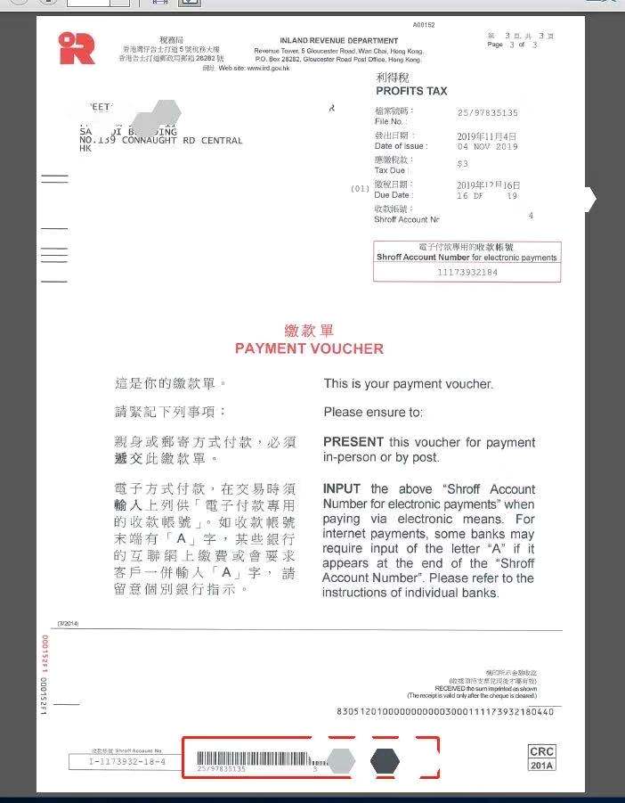 可以将支票连同缴款单一起寄回香港税务局(因为缴款单上是有地址的,以下看图片),支票抬头写香港特别行政区政府,并在支票背面写上缴纳单的收款账号。需要过5个工作日打电话去税局问是否收到。