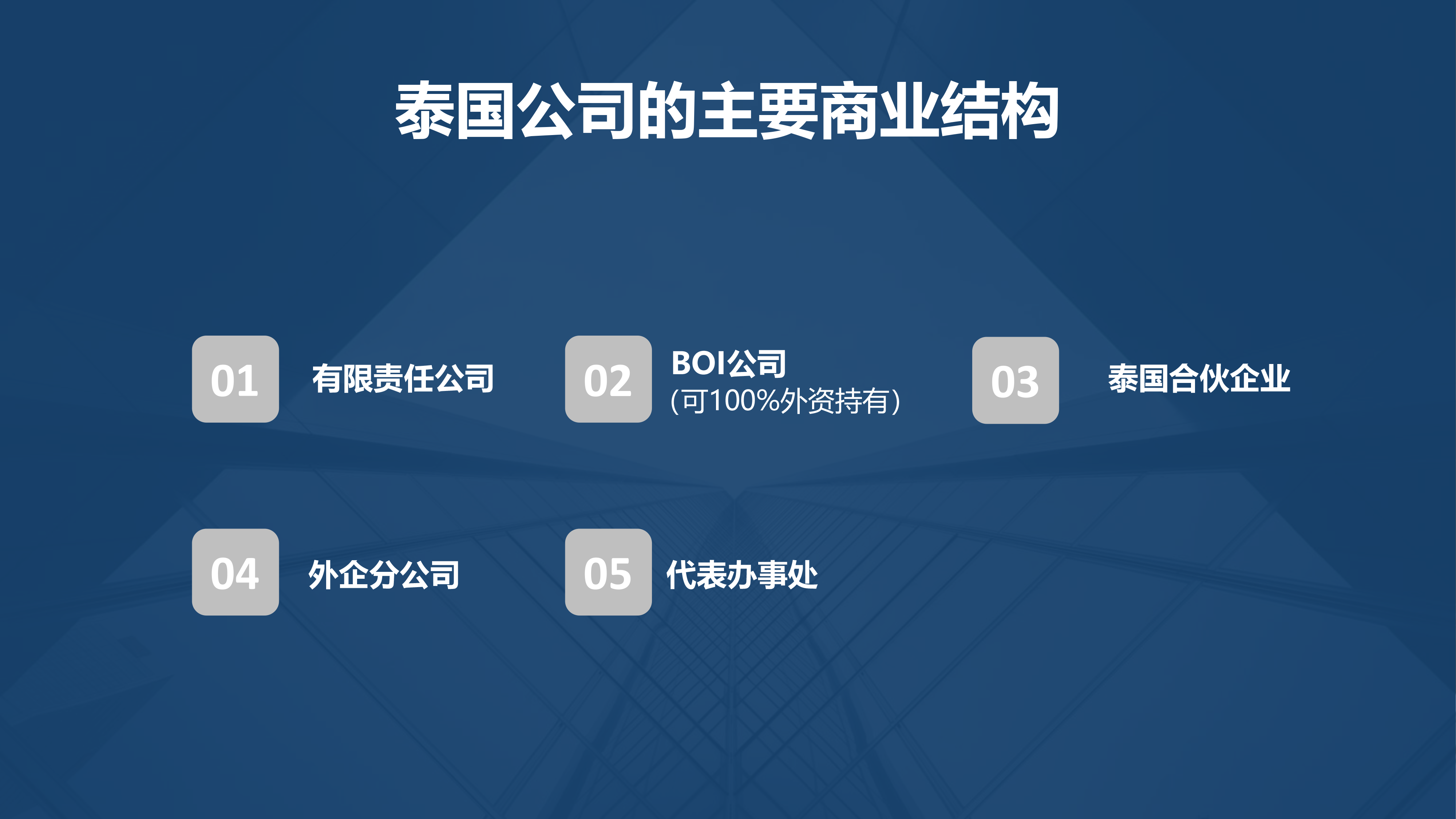 对于想在泰国当地设立公司,或因其战略位置而愿意进行投资的海外投资者来说,