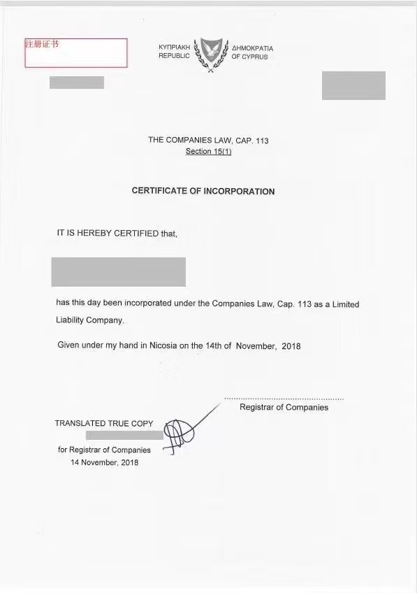 注册地址:必须在塞浦路斯(我司提供)